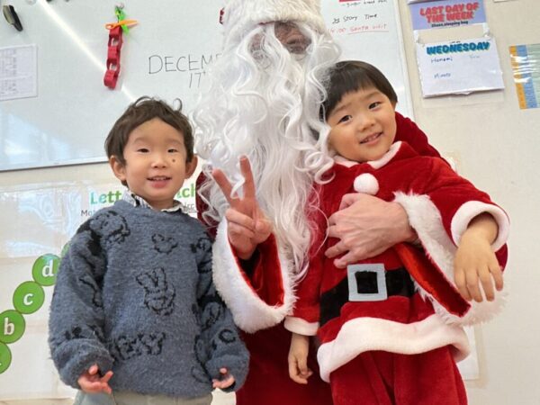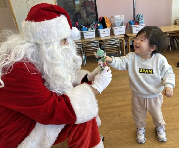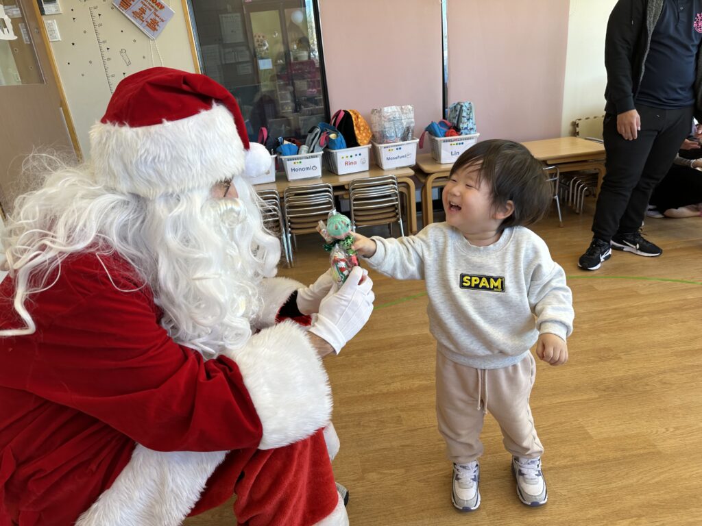 サンタさんが教室にやってきてプレゼントを配ってくれました!