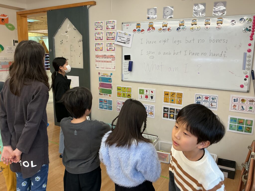 なぞなぞの答えが正解したら、レッスンが始まるまでは自由時間です。
