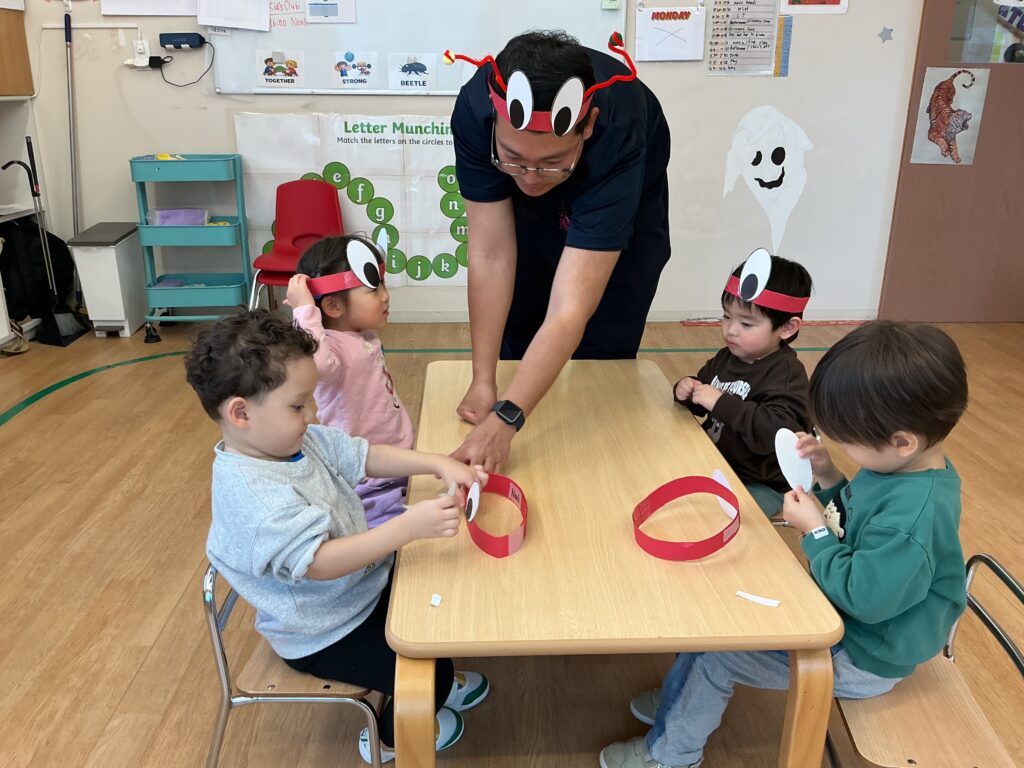 ヘッドバンドを作った後は、『Ants go marching』の音楽に合わせて、スクール内を行進しましたよ🐜🐜🐜🐜🐜♪♪♪